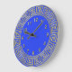 Grande Horloge Ronde Art Deco Gold Blue Greek Key Border DIY Background