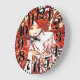 Beautiful Art Nouveau vintage fine art by Mucha of a Lady with red Hair on a Bicycle is on this Vintage Big Numbers Wall Clock. Image : public domain due to expired copyright.