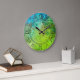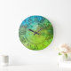 Grande Horloge Ronde Art Rustique Inspiré par l'industrie Mur Bleu Vert
