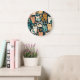 Grande Horloge Ronde Artsy Chat Motif mignonne
