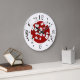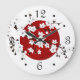 Grande Horloge Ronde Asie Floral blanc cerisier rouge