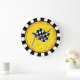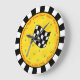 Grande Horloge Ronde Auto Race Fan À damiers Drapeau noir Jaune Personn
