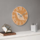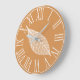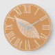 Obtenez un élégant style d'automne dans votre maison avec ce squelette feuille blanche et horloge arrière - plan orange rustique avec des chiffres romains blancs.
