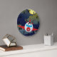 Gardez une trace du temps avec cette horloge murale d'avion fantaisiste présentant un jet rouge volant à travers une nuit étoilée. La lune jaune vif sert de toile de fond magnifique pour cette pièce fonctionnelle de décoration de nurserie ou de bureau. Cette horloge sur le thème de l'aviation est un excellent moyen d'inspirer les rêves de vol et ajoute une touche ludique à la pièce de tout amateur de voyage.