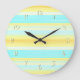 Grande Horloge Ronde Bandes Aquarelles Jaune Aqua Bleu Été Ensoleillé