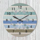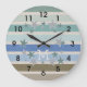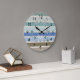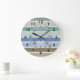Ajoutez un détail de décoration plus agréable ainsi que la commodité de batterie à votre chalet de plage, camping-car ou chambre de style côtier avec cette horloge murale à bandes de plage. Créé dans une palette de bleu marine et turquoise apaisant, gris et tans avec un monogramme personnalisé. Une couronne d'accents d'étoiles de mer complète l'atmosphère. Vous avez le choix entre carré ou rond. Voir plus dans cette collection de design "Beach Stripes and Starfish" à Camp_and_Cottage sur Zazzle.