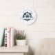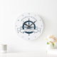 Horloge murale chic sur mesure du capitaine de bateau pour votre croisière sur la mer avec un volant bleu marine. Ce design à thème nautique est parfait pour un timonier de navire. Personnalisez avec votre nom de famille ou autre texte.