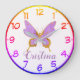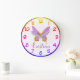 Grande Horloge Ronde Beautiful Purple & Gold Butterfly