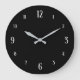 This modernes et sophisticated wall clock feobjets a solid black background. The numbers are printed in a sophisticated white font and the hands are pale gray.