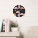 Grande Horloge Ronde Black Pink Orange Abstract Art Pattern