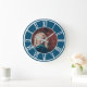 Grande Horloge Ronde Blanc Roman Numérique Bordure Océan Bleu RD Ajoute