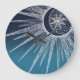Grande Horloge Ronde Blanc Sun Moon Mandala Blue Gradient Design