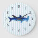 Grande Horloge Ronde Bleu marteau marin requin rayure
