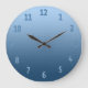 Un design d'horloge murale coloré mais assez simple, le tout basé sur une couleur : Bleu. Les chiffres sont des nombres réguliers avec un petit contour noir. Les chiffres et l'arrière - plan sont en dégradé opposé, ce qui fait que les chiffres se démarquent de manière cool. Recherchez d'autres versions de couleurs comme turquoise, rose, or, bleu et gris.