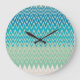 Grande Horloge Ronde Bleu turquoise, turquoise et vert Zigzags