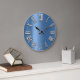 Grande Horloge Ronde Blue Grey gris métal gris gris argent nombre romai