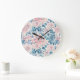 Grande Horloge Ronde Boho Abstrait Floral Pastel rose bleu vert