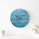Grande Horloge Ronde Bois bleu naturel, arrière - plan texturé.