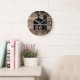 Grande Horloge Ronde Bois rustique vieilli noir grange maison de ferme