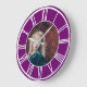 Grande Horloge Ronde Bordure de chiffres romains blancs violet ajouter
