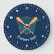 Icône de baseball avec deux chauves-souris et une balle sur un bouclier bleu. Couleur arrière - plan personnalisée. Texte personnalisé.