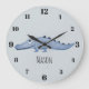 Grande Horloge Ronde Boys Blue Watercolor Crocodile Safari Nom Nursery