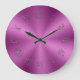 Grande Horloge Ronde Bright Pink Metallic Clock with Roman Numbers