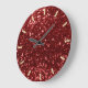 Grande Horloge Ronde Burgundy Maroon Red Sparkly Faux Glitter Gold