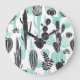 Grande Horloge Ronde Cactus Dessinés À La Main : Doodle sans joint
