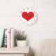 Grande Horloge Ronde Cadeau de la Saint-Valentin Cœur Motif Rouge Blanc