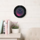 Une forme de lune ronde, présentant une teinte iridescente rose et des nuances vertes. Le tout est sur un fond noir. Des chiffres verts complètent cette horloge saisissante. Disponible également en forme carrée.