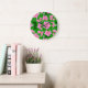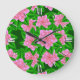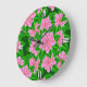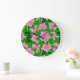 Grande Horloge Ronde Camellias rose glace et Feuilles verts