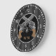 Très belle horloge murale qui comporte un drapeau américain en détresse foncé dans l'arrière - plan, fusils croisés avec un badge étoile au centre et votre monogramme au fond. Idéal pour les patriotes, les clubs de tir ou les amateurs d'armes à feu.