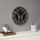 Très belle horloge murale qui présente un drapeau américain en détresse foncé dans l'arrière - plan, fusils croisés au centre et votre nom ou club au sommet. Idéal pour les patriotes, les clubs de tir ou les amateurs d'armes à feu.