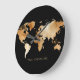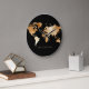 Grande Horloge Ronde Carte du monde de l'aquarelle noire et or