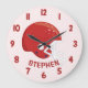 Casque de football rouge mignon pour garçons Chambre Mur Grande Horloge. Personnalisez ce design personnalisé avec votre propre nom ou texte.