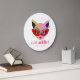 Grande Horloge Ronde Cat Addict Cute Red Pink Gold Name Personalized