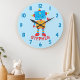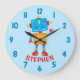 Chambre de garçons de science robot mignon mur Grande horloge. Personnalisez ce design personnalisé avec votre propre nom ou texte.
