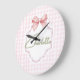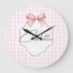 Grande Horloge Ronde Charlotte personnalisée avec nœud rose et imprimé