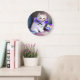 Grande Horloge Ronde Chat blanc avec collier de fleurs violettes