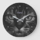 Grande Horloge Ronde Chat élégant tabby sur des lunettes gris argenté