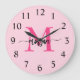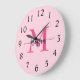 Grande Horloge Ronde Chaud rose moderne Script Girl Monogramme Nom