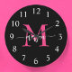Grande Horloge Ronde Chaud rose noir moderne Script Girl Monogramme Nom
