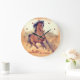 Grande Horloge Ronde Chevaux Mustang Sauvages Stampede Aquarelle