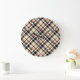 Grande Horloge Ronde Chic Rouge Beige Noir Blanc Plaid Stripes Motif