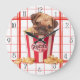 Petit chiot carlin dans un contenant de pop-corn rétro, peint par l'artiste Maryline Cazenave.