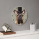 Belle illustration d'un chiot français à la mode hipster en verre d'oeil, chapeau haut et cravate arc chic sur arrière - plan gris. Conçu par Maryline Cazenave.