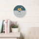 Grande Horloge Ronde Chouette et chat (bleu de mer)