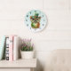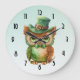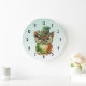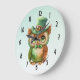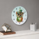 Grande Horloge Ronde Chouette mignonne dans un chapeau vert