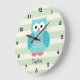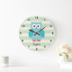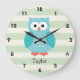 Grande Horloge Ronde Chouette turquoise sur Pastel Green Stripes